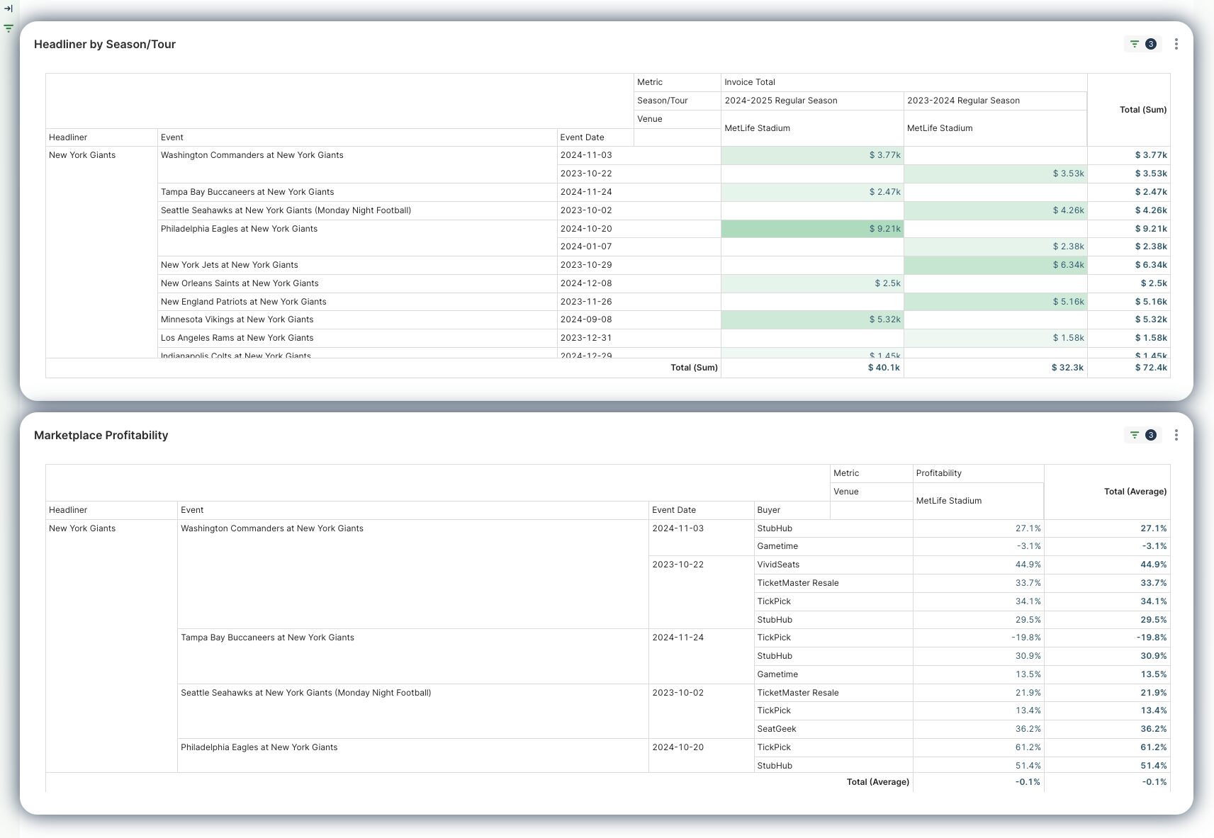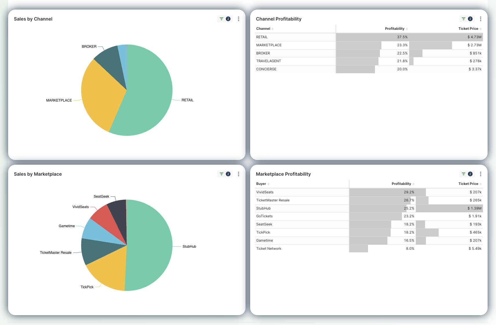 Financial performance dashboards